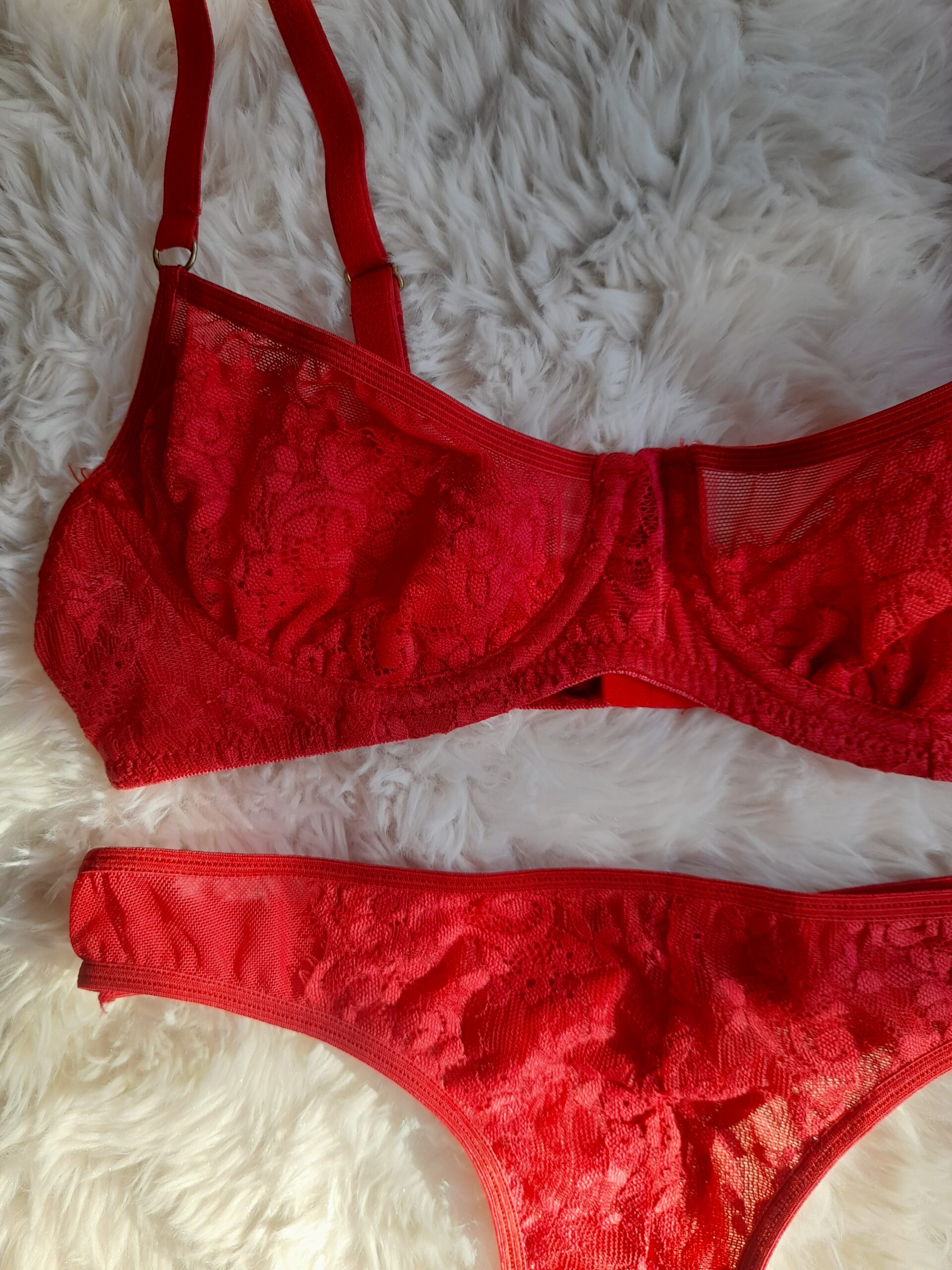 Conjunto de encaje con aro color cereza
